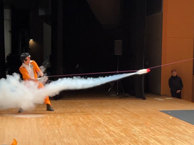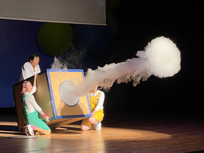 「科学」ではなく「科楽」をモットーに幼児、小学生向けのサイエンスショーを得意とする。