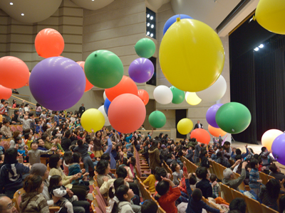 体育館騒然大興奮のフィナーレ大実験!巨大な風船を膨らませて空気の重さを体感!巨大風船に触って空気の重さを体感しよう!